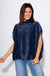 Cozy meets chic in this oversized navy pullover poncho. Crafted from luxuriously soft knit fabric with a subtle sheen, it features a relaxed mock neck and gentle topstitching for refined detail. The flowy, oversized silhouette drapes effortlessly, making it perfect for layering over jeans or leggings for a polished, comfortable look.