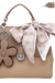 Flower Charm Flap Bag with Guitar Strap in Taupe