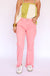 Mid-Rise Straight Step Hem Pants in Flamingo