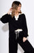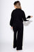 Elevate your loungewear game with this effortlessly chic two-piece knit set. The long-sleeve top features a contrast collar, striped sleeve accents, and side slits at the hem for an easy, relaxed fit, while the elasticated cuffs keep the silhouette sleek. Paired with wide-leg knit pants with a drawstring waistband, side pockets, and matching contrast stripe detailing with slit hems, this set combines comfort and style seamlessly. Lightweight, non-sheer, and unlined, it’s perfect for lounging at home or casual outings with a polished edge.