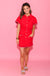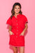 Get ready to turn heads in our Red Ruffled Detail Button Down Dress! Featuring a solid button down design with mid-length buttons for easy wear, this dress also has a built-in shorts layer and ruffle detailing for added style. The shorts are also lined for optimal comfort. Upgrade your wardrobe with this stunning dress.