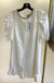 A ruffle hem dress, featuring a round neckline with rhinestones. With puff sleeves and hidden zipper at rear.