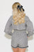 Step into sophisticated style with our Scallop Stitch Button-Down Romper in Black Stripe. This chic romper features a classic collared neckline with a button-down placket, offering a refined and tailored look. The striped fabric adds a timeless touch, while scallop stitch trim detail on the bodice, cuffs, and hem enhances its elegant design. Long puff sleeves with buttoned cuffs provide a stylish contrast, and the smocked elastic high waist ensures a flattering fit. Practical pockets complete the look, making this romper as functional as it is fashionable. Perfect for both day and evening wear, this versatile piece effortlessly combines classic charm with modern flair.