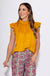 Elevate your wardrobe with this mustard-colored Suede Ruffle Sleeve Top. Crafted for a soft, luxurious feel, its unique ruffle sleeves add a feminine touch while the rich mustard hue brings warmth and vibrancy. Perfect for dressing up or down, this top combines comfort and style effortlessly, making it a standout piece for any occasion.