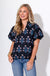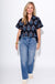 This floral pullover top features charming short bubble sleeves and a flattering smocked band collar with a subtle V-neckline. Scattered with painterly pink blossoms and shades of violet leaves, its airy silhouette offers both comfort and elegance. Pair it with denim or dress it up.