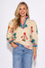 Floral Contrast Trim Puff Sleeve Top in Ecru
