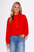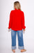 Sophisticated yet easy to wear, this long sleeve button-up top in bright tomato red brings refined texture and timeless charm to your wardrobe. Crafted from a softly textured solid fabric, it features delicate ruffle accents along the button placket and a romantic ruffled mock neckline. Whether styled for work or dressed up for dinner, this versatile piece adds a polished touch to any outfit.