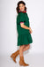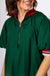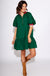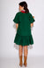 Feminine with a bold twist—this rich hunter green mini dress features statement puff sleeves and a playful ruffle hem, balanced by a sleek zip-front neckline. A multicolor accent band adds just the right pop of personality, while side pockets keep it as practical as it is polished. From brunch to girls’ night, it’s the kind of dress that turns heads without trying too hard.