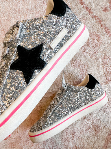 Slip-on styling No tie Traction signature outsole Fits true to size Silver Glitter Navy Silver laces