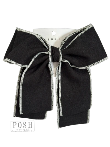 View full detailsThis clip on hair bow features a stitched edge ribbon with two full loops and two tails on a French barrette hair clip. One size.
