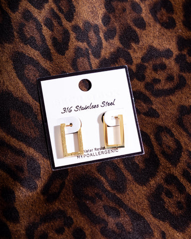Crafted from durable stainless steel, these gold square hoop earrings combine modern design with lasting comfort. Their hypoallergenic quality ensu...