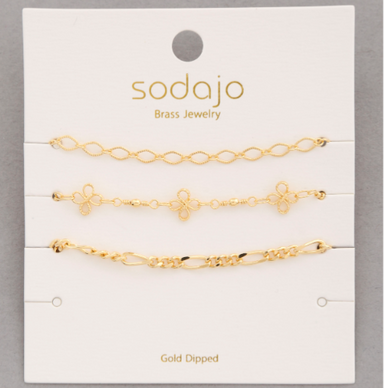 View full detailsElevate your wrist game with this Gold Dipped 3-Piece Bracelet Set—a perfect blend of elegance and versatility. Featuring two distinct chain styl...
