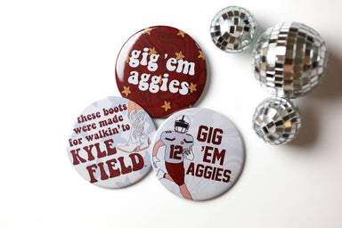 View full detailsGear up for game day with our eye-catching Texas A&M game day pins. Each 3-inch button is made from high-quality metal, ensuring durability and...