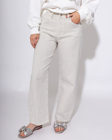 Elevate your denim game with these striking striped barrel jeans that blend timeless style with modern comfort. Crafted from soft comfort stretch d...