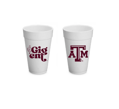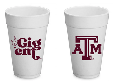 View full detailsCelebrate game day Aggie-style with this set of 8 A&M styrofoam cups! Each 20oz cup features “Gig ’Em” on one side and the iconic “A&M” on ...