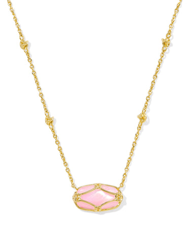 Our iconic shape dressed in beautiful latticework, the Elisa Lattice Frame Gold Short Pendant Necklace in Blush Ivory Mother of Pearl is going to b...