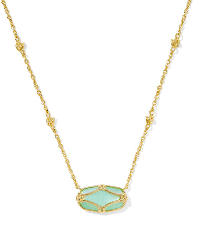 Our iconic shape dressed in beautiful latticework, the Elisa Lattice Frame Gold Short Pendant Necklace in Light Green Mother of Pearl is going to b...
