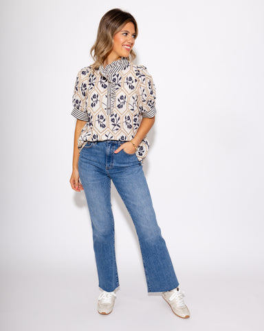 Delicate details, everyday charm. This Embroidered Bloom Top features a floral pattern embroidered across a soft cream background, accented with st...