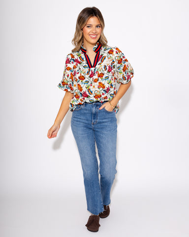Elevate your back-to-school wardrobe with our Garden Buttoned Blossom Top! Featuring a charming garden landscape print and a contrast button front ...