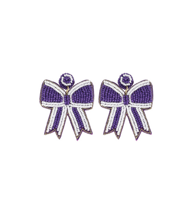 Add a touch of game day glam with our 2-Tier Striped Bow Ribbon Beaded Earrings. These statement earrings feature a striking design with striped bo...