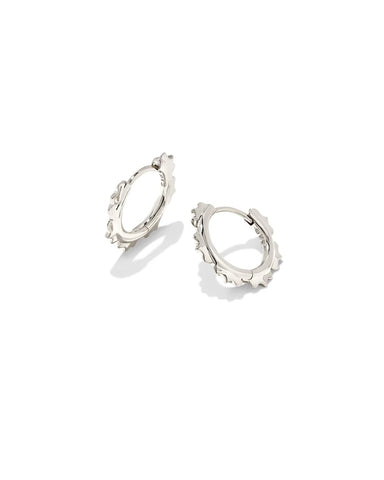 The trending huggie style meets intricate metal detailing in the Genevieve Huggie Earrings in Rhodium. Dainty and lightweight, floral-inspired meta...