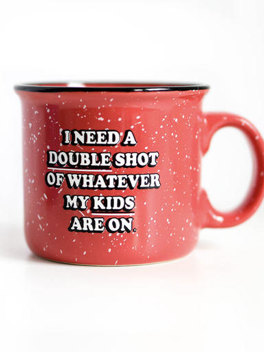 Fleck Mug - I Need A Double Shot Of Whatever My Kids Are On Color: Mauve Fleck Features: Ceramic Coffee Mug Black Trim Around Rim 3 1/2 Height - ...