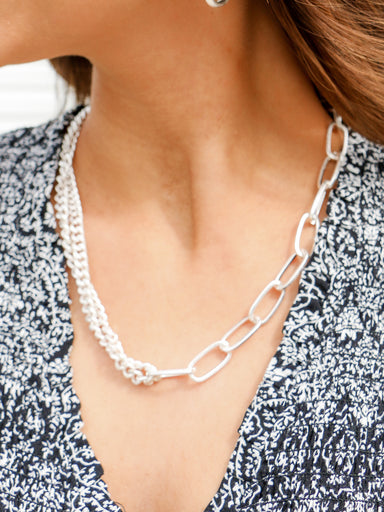 Chain linked necklaces are SO in this season! This stunning, chunky silver beauty was simply made to help your outfit shine even more than it alrea...