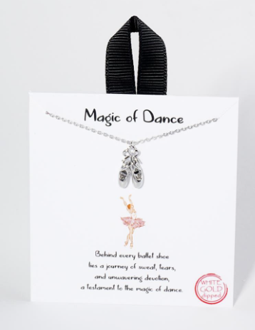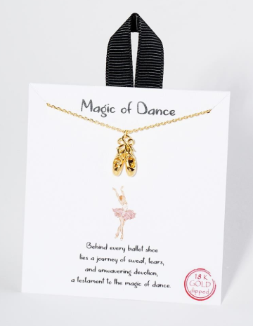 Step into elegance with these 18K gold and rhodium-dipped ballet shoe necklace. Handmade from hypoallergenic brass, they’re lead and nickel free—pe...