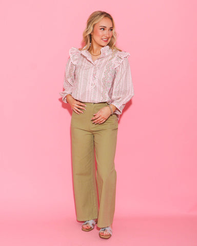 Fall head over heels for our Pink Floral Perfection Button Up Top! With its delicate floral print, charming puff sleeves, and feminine border detai...