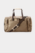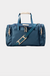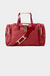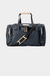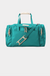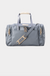 - Sleeve on the back designed to fit securely over the extended handle of a rolling suitcase