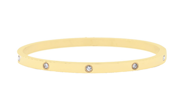 View full detailsElevate your style with our Crystal Gleam Gold Bangle Bracelet. This stunning metal bangle features dazzling rhinestone studs that catch the light ...