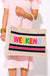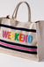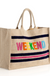 Carry all of your summer essentials for a weekend away in Shiraleah's "Weekend" Beach Bag. Made of durable jute fabric and roomy enough to fit a towel and then some, look no further for your favorite warm weather bag. The trendy toothbrush embroidery adds a pop of color and adds intention to this versatile tote. Pair with other items from Shiraleah to complete your look!