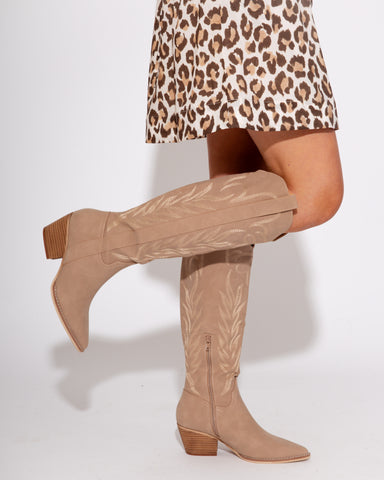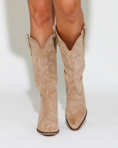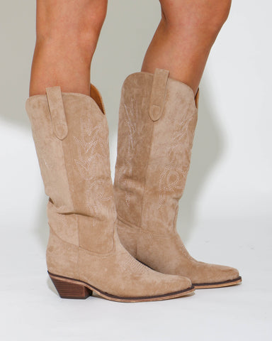 View full detailsThe Emmylou - Looking for a stylish and timeless pair of cowboy boots? Our Emmylou tan suede boots are the perfect choice! Made from high-quality m...