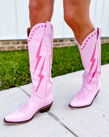 View full detailsThe Dolly - Looking for a pair of cowboy boots that are both stylish and unique? Our pink lightning cowboy boots are just what you need! These boot...
