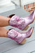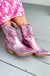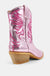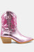 ZEN updates classic cowboy boots with a brilliant twist. Crafted with metallic faux leather and detailed with Western stitching, ZEN features a stacked heel and side pull tabs.