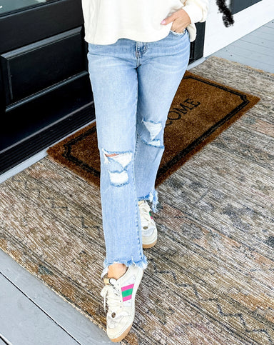 Elevate your denim game with our High Rise Straight Jeans in Vintage Light Wash. Made from 100% cotton fabric, these jeans offer a comfortable and ...