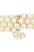 Three turns of luxurious pearls are highlighted with tiny gold rondelles and finished with a precious bow charm in gold with clear crystals. Alone BuDhaGirl’s White Pearl Wrap Bracelet is sophisticated and classic, and paired with White Pearl Three Queens All Weather Bangles® makes for a mesmerizing combination!