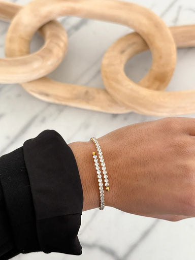 No reviews$ 25.00| /(SOLD AS ONE) Elevate your everyday stack with this effortlessly chic beaded bracelet. Crafted from 18k gold-plated stainless steel, it's water res...