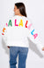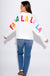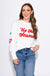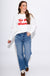 Get in the holiday spirit with the "’Tis the Season/Fa La La" Relaxed Sweatshirt! This ivory pullover features cheerful red chenille lettering across the front and a festive rainbow “Fa La La” print design wrapping around the sleeves and back. With its drop shoulders and slightly oversized fit, this sweatshirt is made for cozy nights in, cookie baking, or spontaneous dance parties by the tree. Pair it with your favorite jammies or red denim for a merry and bright look that pops!