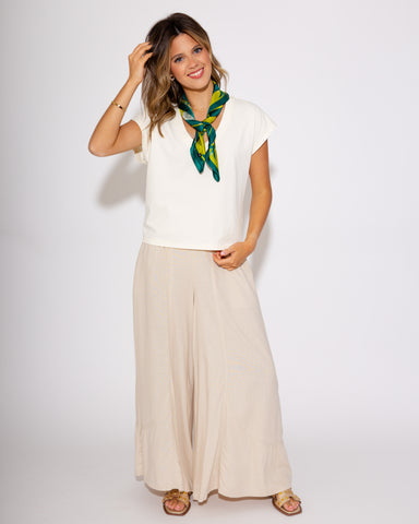 View full detailsIndulge in effortless style with our Tan and White Contrast Top. This striped pullover boasts structured short sleeves for added sophistication. Th...