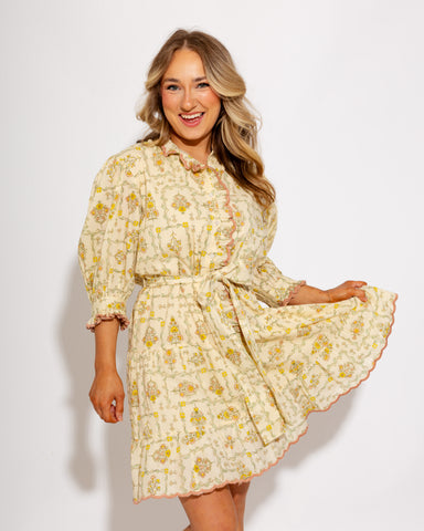 Delicate and dreamy, the Ivy Jane Trellis Flowers Mini Dress features a soft ivory background adorned with a charming floral trellis print. This br...