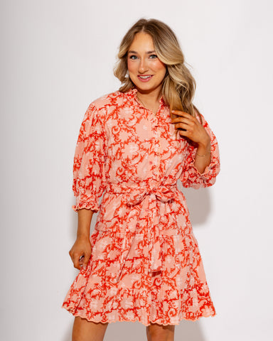 Bold, boho, and made to turn heads — the Uncle Frank Pretty Paisley Dress pairs a lively paisley print with a rich coral background for a fresh, st...