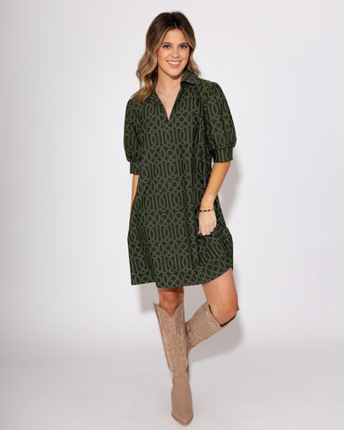 View full detailsSophisticated and statement-making, the Emerson Dress in Garden Gate Loden features a structured A-line silhouette and polished mock neckline—signa...
