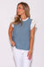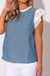 This Blue Lace Flutter Sleeve Top is a dream come true for any fashion-forward individual. With its round neck and double layered ruffled cotton lace sleeves, this top is both stylish and comfortable. The back cover button down detail adds a touch of elegance. Made with solid cotton fabric, it's the perfect addition to any wardrobe.