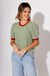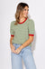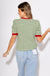 Indulge in effortless style with our Olive and White Contrast Top. This striped pullover boasts structured short sleeves for added sophistication. The knit material is lightweight and breathable, ensuring your comfort all day long. Perfect for any occasion, this non-sheer top is a must-have in your wardrobe.