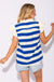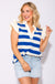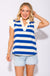 Transport yourself to a coastal escape with our Sail and Flutter Striped Top! Featuring a bold horizontal stripe pattern and ruffled flutter sleeves in contrast cream, this top is sure to turn heads. The relaxed, comfortable fit and notched V-neckline with pop collar provide effortless style and beachy charm.