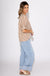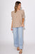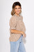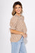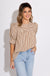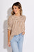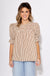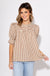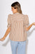 Sharp lines meet soft details in this soft brown stripe pattern pullover top. With structured short sleeves, a round neckline, and button-front closure, it blends crisp tailoring with feminine flair.