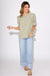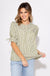 Sharp lines meet soft details in this soft olive stripe pattern pullover top. With structured short sleeves, a round neckline, and button-front closure, it blends crisp tailoring with feminine flair.