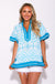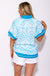 Unleash your inner fashionista with our Blue Moroccan Mosaic Top! This pullover top features a vibrant Moroccan print and contrast caftan-inspired neck band. The bubble sleeves and accent outline slit hem add unique touches. Lightweight and non-sheer, this top is perfect for any occasion.