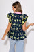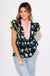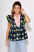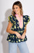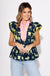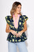 This navy peplum top brings the wow-factor with pops of playful neon! An abstract floral design bursts with energy thanks to neon yellow flowers and pink trim, while the scalloped v-neckline and flutter sleeves add a touch of whimsy. Peplum shaping flatters the waistline for an easy, feminine silhouette. Whether you're brunch-bound or dressing up denim, this top is the perfect blend of bold and beautiful.